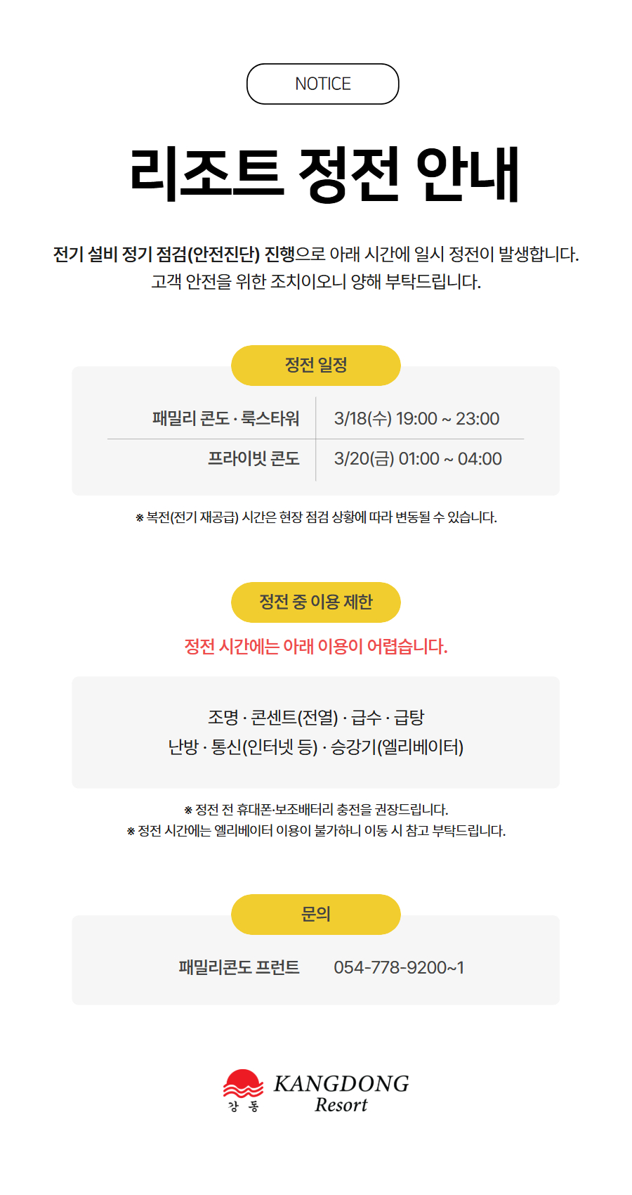 리조트 정전 안내